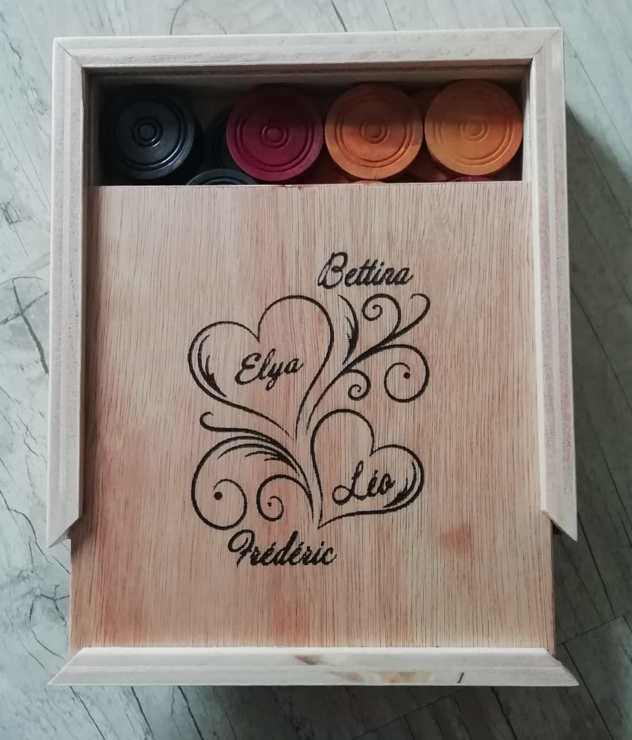 sur une création de votre choix (boite à bijoux, boite à thé, jeu en bois, marque page,
