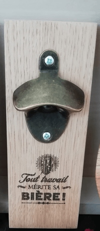 décapsuleur mural, planche à découper, porte clés ou tout autre objet).
